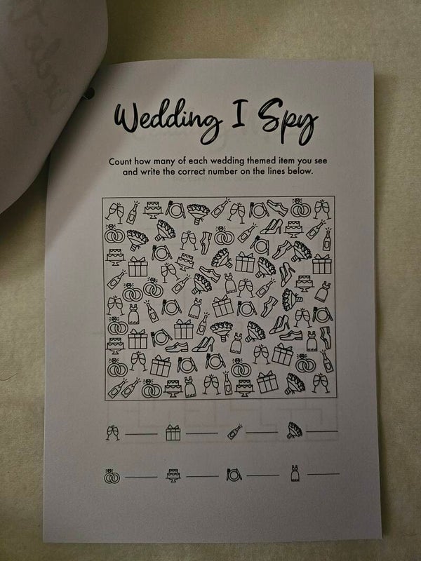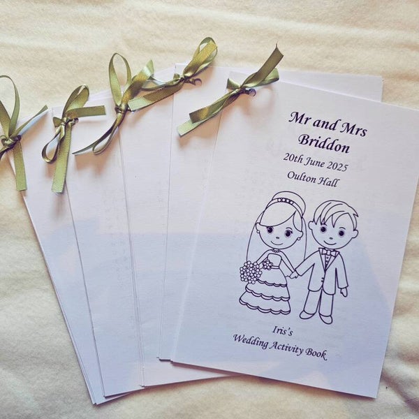 Wedding Activity Pack. All wording can be personlaised. Please let me know colour of ribbon required.